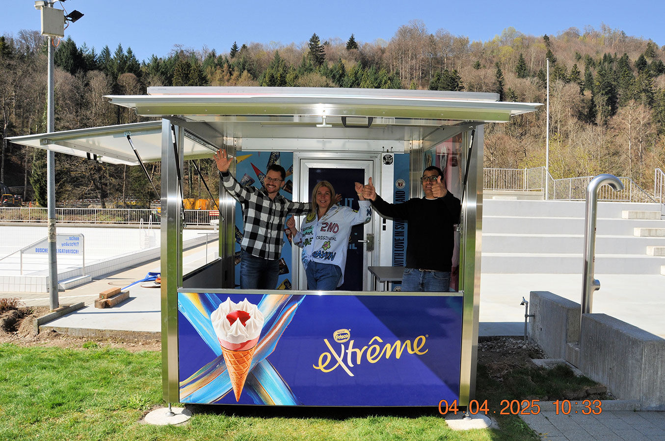 Mobile Verkaufspunkte, geeignet für saisonalen oder Ganzjahreseinsatz. Individuell ausgerüstete Verkaufsanlagen zum Verkauf von Kaffee, gekühlter Getränke, Speiseeis, Crepes, Sandwichs usw..